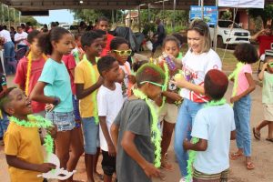 As crianças participaram de diversas atividades recreativas, como pintura facial, distribuição de sorvetes e pipocas, além de brincadeiras conduzidas por palhaço, com entrega de brindes. A iniciativa demonstra o compromisso da primeira-dama com ações que valorizam a infância e fortalecem os vínculos comunitários por meio da cultura e do entretenimento.